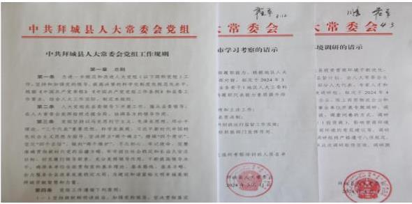 一是完善制度,夯实基础。今年以来,拜城县持续完善人大常委会及人大办运行机制,修订完善《中共拜城县人大常委会党组工作规则》,积极构建上下贯通、运转协调、统一高效的人大工作体系,为进一步加强党对人大工作的集中统一领导,贯彻落实重大事项请示报告制度夯实了工作基础。