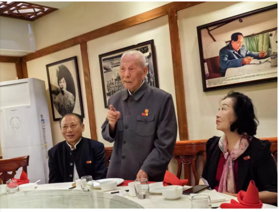 五月的北京,鲜花盛开,阳光灿烂。5月14日上午,纪念毛泽东主席同中央警卫团一中队警卫干部战士讲话发表69周年暨毛主席乘专列外出视察63周年座谈会在北京泽园酒家隆重举行。原毛泽东身边工作人员、毛泽东专列工作人员及来自全国各地的红色文化传播者、企业家汇聚一堂,缅怀毛主席,牢记毛主席教导,弘扬毛泽东思想。座谈会由中共中央办公厅原毛泽东身边工作人员、中国人民解放军原八三四一部队毛泽东警卫战士、流动的中南海——原毛泽东专列工作人员,《永远怀念毛泽东》珍藏画册编辑委员会、北京普世国学文化院等单位主办,重庆盛世荣华建设工程(集团)有限公司协办。原驻香港部队文工团团长、国家一级编导、少将,联合国科教文组织和平文化大使,姜乃元将军主持会议。