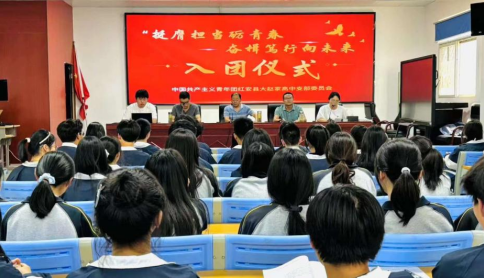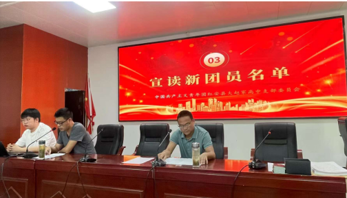 5月16日,红安县大赵家高级中学隆重举行2024年首批新团员入团仪式,号召全体同学学习习近平新时代中国特色社会主义思想,争做新时代新青年。