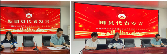 老团员代表刘梦妮同学发言,分享团员感悟。新团员代表吴婷同学,代表新团员向各位老师与各位同学承诺,将以身作则,在同学们面前起到表率作用,不断进取,锻炼和提高自己,继续以积极进取的心去工作,学习,生活。