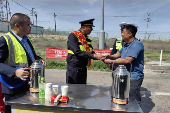 “党建+路政”普法宣传,提升交通执法形象。伊犁执法支队将“五个好”党支部创建、建设“四个合格”党员队伍等中心工作与路政宣传月想结合,与党纪学习教育相结合,进一步增强执法队伍凝聚力和战斗力。所属特克斯执法大队党员志愿者在服务区设立便民服务台,提供便民服务箱、雨伞、饮用水、服务指南等暖心服务,热心帮助过往司乘人员解决燃眉之急,充分发挥了党支部战斗堡垒和党员先锋模范作用。