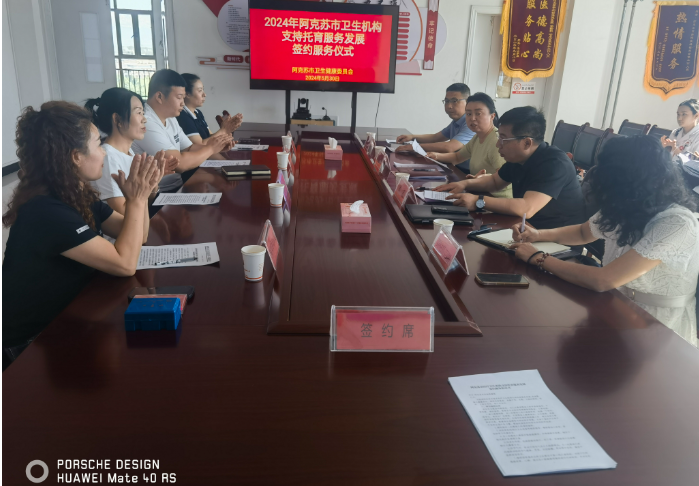 为进一步提升我市托育服务水平,促进儿童健康成长,5月30日,阿克苏市托育机构“医育结合”签约仪式在市妇幼保健院会议室举行。市卫健委党委委员马燕、妇幼科科长买热古丽·麦麦提,市妇幼保健院书记吴超,市疾控中心书记王英杰等有关同志出席仪式。