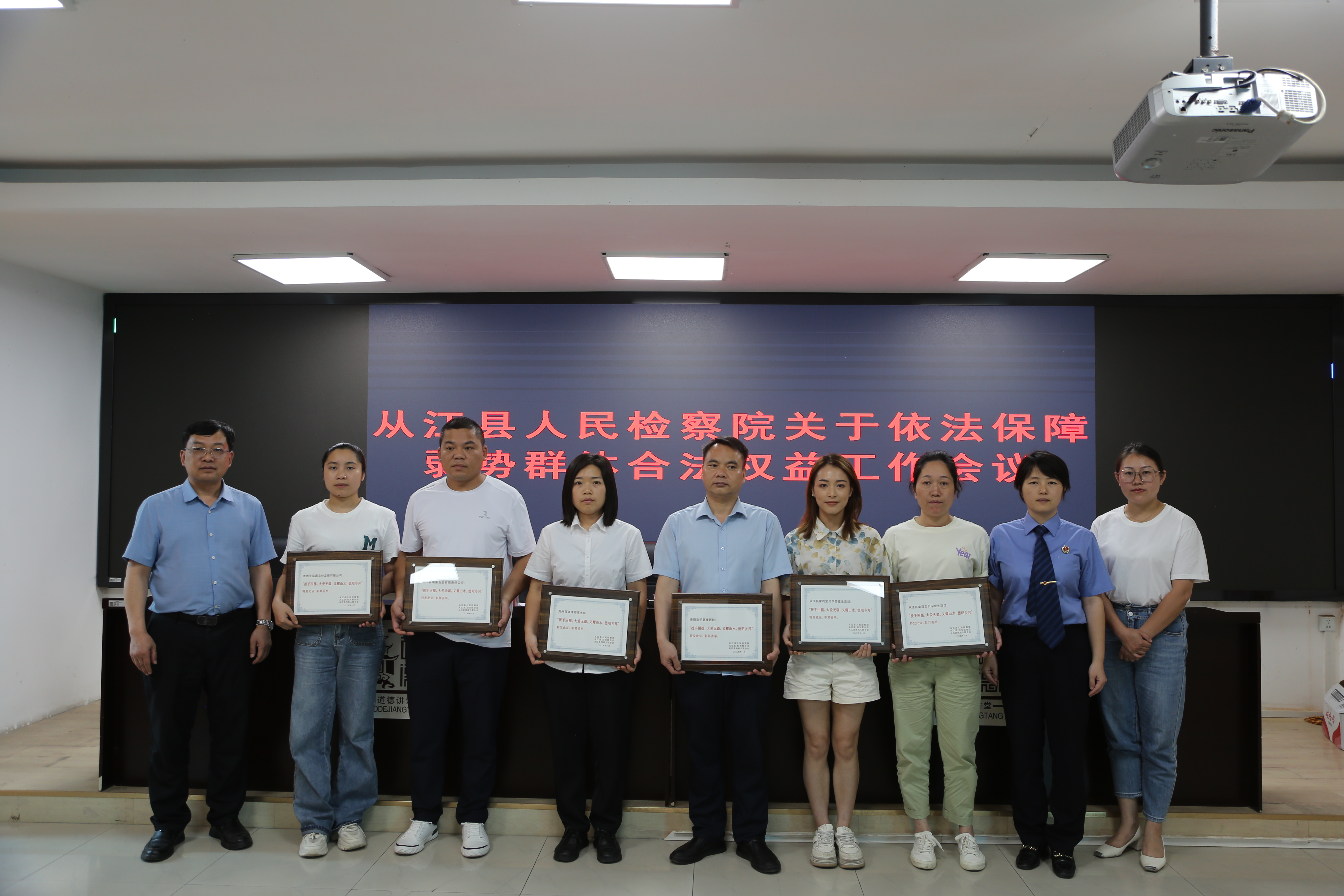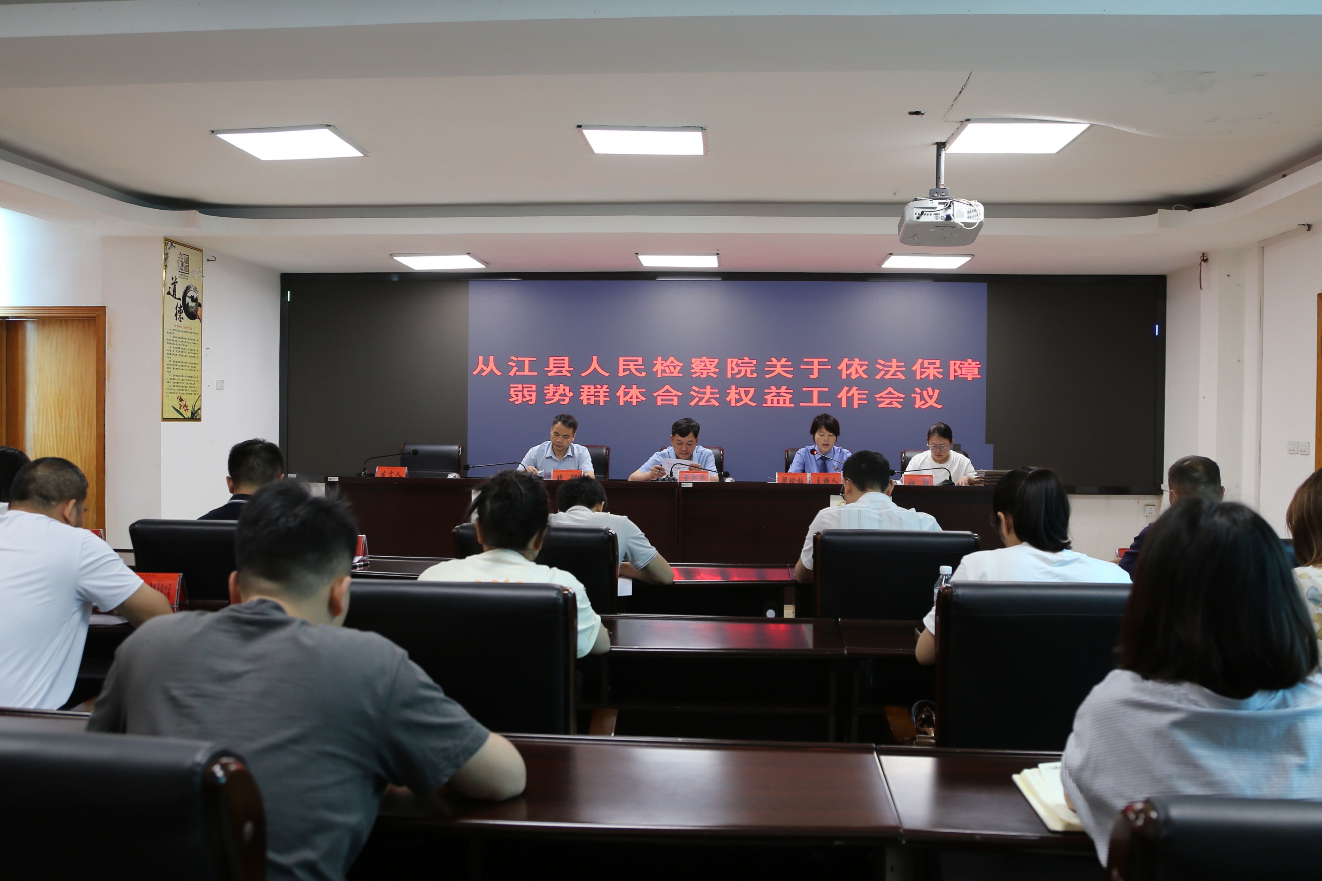 为全面落实最高检开展“检护民生”专项行动有关工作要求,切实维护和保障弱势群体合法权益。5月31日,从江县人民检察院召开依法保障弱势群体合法权益工作会议,会议邀请了县法院、县妇联、县残联、县司法局、县民政局、县红十字会,以及社会爱心人士、爱心企业代表、弱势群体代表参会,县检察院副检察长梁瑜牡主持会议,县检察院党组书记、检察长雷邦华出席并讲话。