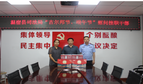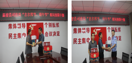 初夏端阳、粽叶飘香。在传统节日端午佳节之际,为体现温宿县司法局党组对挂职干部的关心关爱,使他们感受到大家庭的温暖,感受到温馨、祥和的节日气氛,6月10日,温宿县司法局党组成员邱祖国代表局党组慰问两名挂职干部。