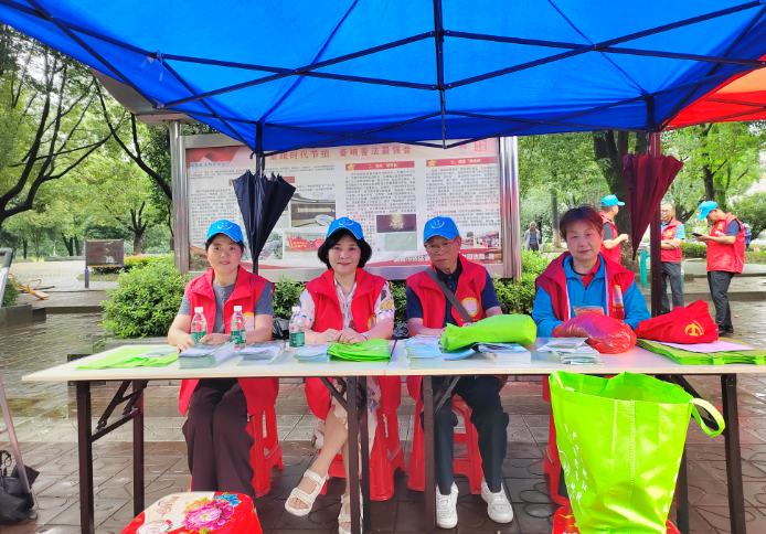 今天是“6·25全国土地日”,上午九时许,迎着连绵细雨,市自然资源局夕阳红志愿者们前往市广场西侧参加“6·25全国土地日”宣传活动。活动现场,4位志愿者王义枝、张金荣、陈初红、苏亚平身穿志愿者红马甲,坐在摆放宣传资料的长条桌边为过往行人发放“节约集约用地 严守耕地红线”宣传材料,王义枝还不断地为领取宣传资料的对象讲解“6·25全国土地日”的来龙去脉及保护耕地、守住红线的重要性。进一步增强全社会的土地忧患意识,引导人们节约用地、合理合法用地、珍惜土地价值和保护土地的意义!(瑞昌市委组织部:潘惠芳)