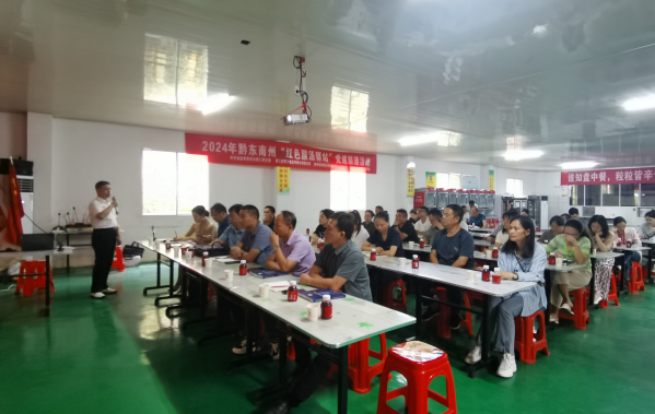 为认真贯彻落实国家市场监管总局《质量发展局关于加快推进质量基础设施助力产业链供应链质量联动提升试点工作的通知》精神,切实解决酸汤产业发展共性难题,提高企业质量管理水平,带动酸汤产业集群升级,实现酸汤产业链供应链质量联动提升。6月28日,黔东南州市场监督管理局组织质量、计量、标准化、认证认可业务科室和检验检测专家团队,召集全州酸汤生产加工企业19家,在麻江县明洋食品有限公司,集中开展酸汤产业链供应链质量联动提升知识培训暨质量基础设施“一站式”服务。