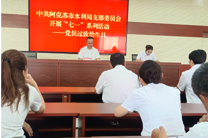 为庆祝中国共产党成立103周年,重温党的光辉历程、弘扬党的优良传统,进一步筑牢党员干部对党忠诚的思想根基,6月28日,阿克苏市水利局开展了“铭记历史、逐梦前行” 迎“七一”系列活动。通过组织党员上专题党课、过集体政治生日、参观红色教育基地、聆听红色故事、重温入党誓词、新党员入党宣誓等一系列活动,激励党员时刻牢记党的宗旨,坚定党的信念,发挥党员先锋模范作用。