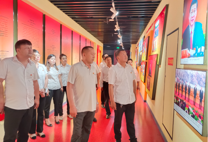 随后,全体党员怀着崇敬的心情,走进阿克苏地区文博院,参观中国共产党党史陈列展览。展览中再现党的第一次全国代表大会召开等历史场景,回顾中国共产党引导人民完成新民主主义革命、建立中华人民共和国,以及推行改革开放新政策的光辉历程。跟随讲解员,聆听讲述党的光辉历程。一幅幅珍贵的历史照片、一篇篇文献资料、一件件军事实物,充分展示了光辉的革命历程,承载着先烈们在峥嵘岁月中的奋斗精神。在现场,大家认真聆听,了解党的光辉历史、伟大成就、宝贵经验。