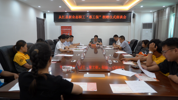 捐赠仪式上,县总工会、县社工部、县两新组织分管同志分别就新业态劳动领域工会组织建设、党组织建设以及妇女组织、共青团组织建设工作作了发言和要求。人保财险从江支公司负责同志也就此次“惠工保”职工防癌抗癌医疗保险政策进行了详细解读,并就具体保险业务进行现场答疑。