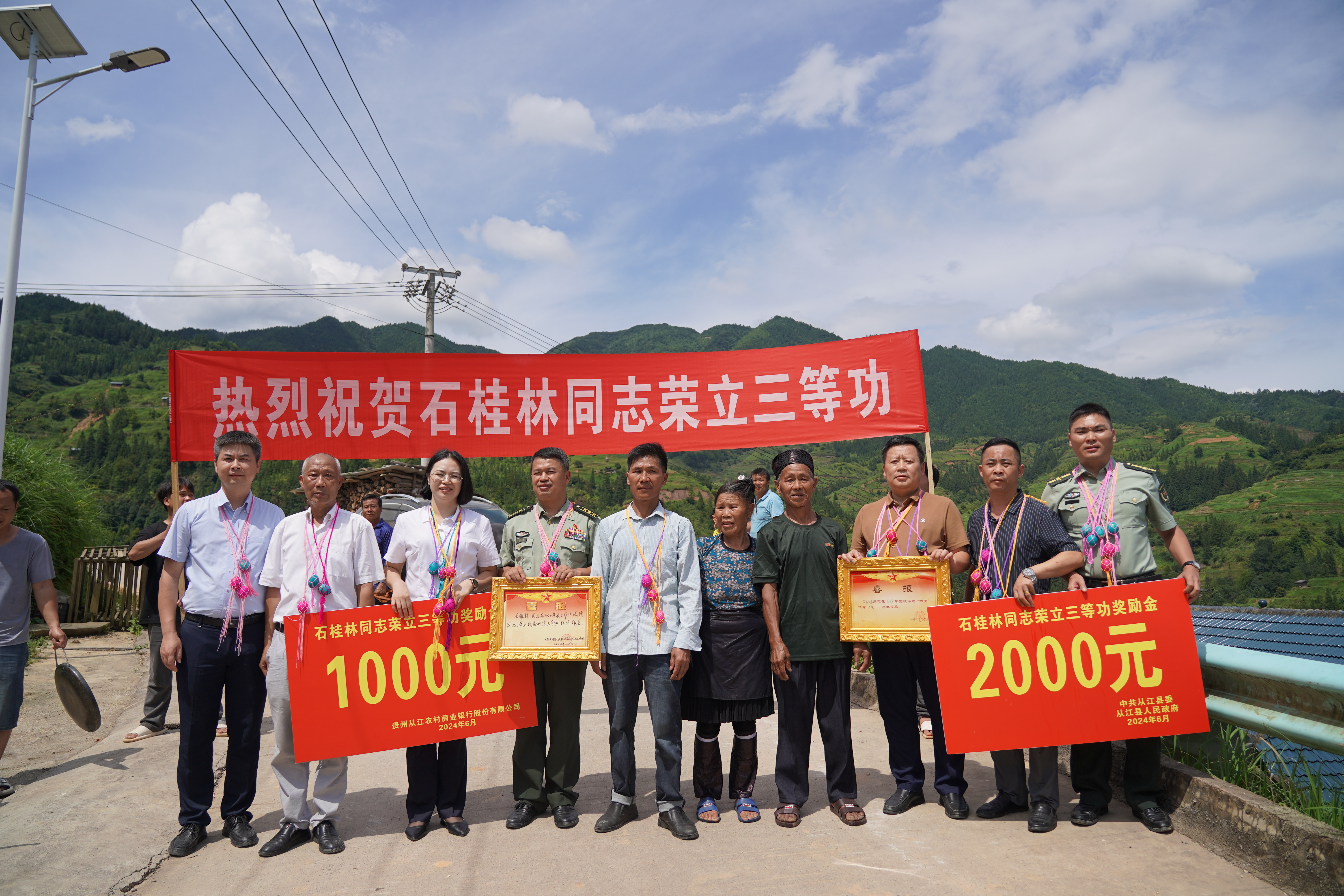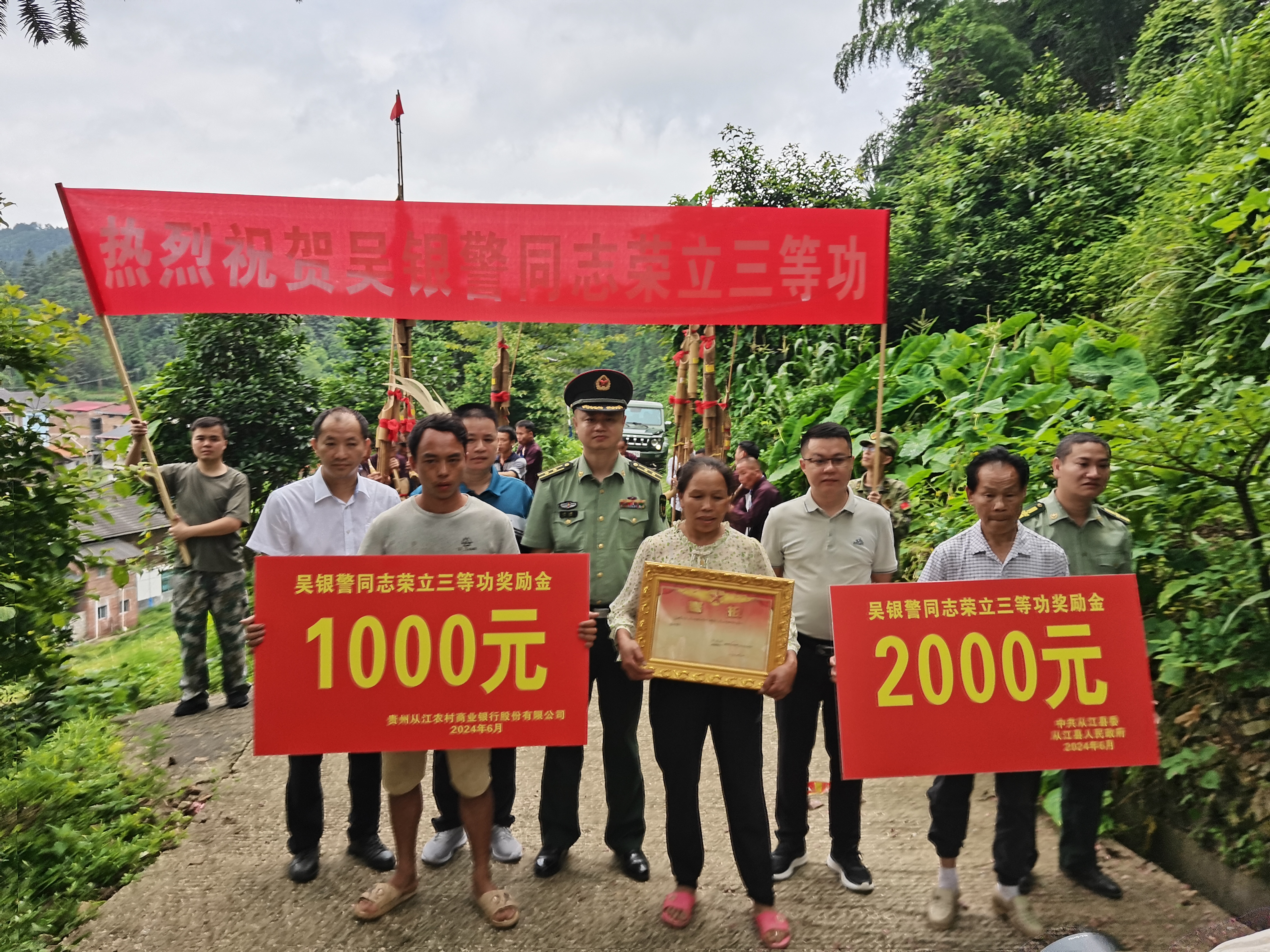 为增强军人军属尊崇感,宣扬功臣荣誉,营造拥军优属的浓厚氛围。7月10日-11日,从江县委常委、县人武部部长杨成景率县退役军人事务局、县人民武装部、贵州从江农村商业银行股份有限公司,先后为在部队荣立三等功的从江籍3名现役军人家庭送去立功喜报,表达对军人军属的亲切慰问和崇高敬意。有关乡镇党委政府和村支两委参加活动。
