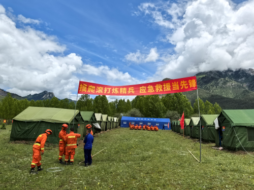 “这是我第一次参加野外驻训,对我来说是我消防生涯中全新的体验,从熟悉的营区到陌生的野外地域,路途很长、但是沿途的风景美不胜收,野外环境虽然艰苦,但这正是我蜕变的开始,我相信自己一定可以克服困难,完成好此次驻训任务。”实习消防员洛松多吉在完成宿营地搭建后说到。