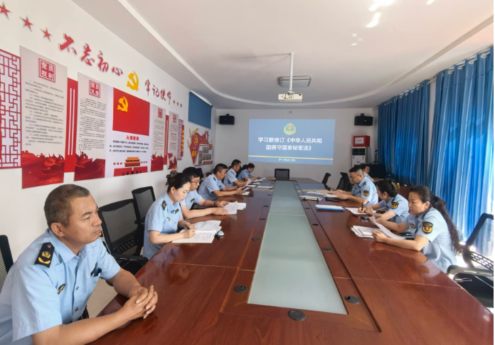 为进一步提升广大干部职工保密安全意识,努力营造知保密、懂保密、会保密的浓厚氛围,切实筑牢维护国家秘密安全防线,近日,伊宁执法大队组织全体干部职工学习新修订的《中华人民共和国保守国家秘密法》。