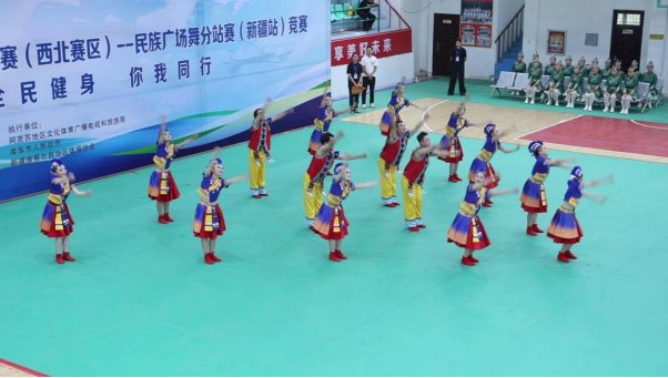 大赛在库车市广场舞代表队带来的《春风何时来》和男子集体舞《爷爷的萨玛瓦尔》中拉开帷幕。此次比赛分为规定套路和自选套路,在规定套路环节各代表队按照规定自行选择《站在草原望北京》《策马奔腾》等曲目。青海和阿克苏代表队带来的《站在草原望北京》,选手们动作整齐划一,舞姿优美流畅,描绘出多民族共舞的美好画卷;陕西和奎屯代表队的《策马奔腾》,选手们通过迅速且有力的伸展与旋转动作,淋漓尽致地彰显出西北地区人民勇往直前的精神风貌;甘肃代表队更是将传统的民族舞蹈元素巧妙地融入现代广场舞中,跳出了新时代的动感与活力,展现出独特的文化韵味。