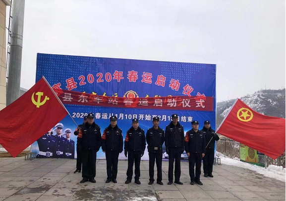 今年春运从1月10日开始至2月28日结束,共计40天。启动仪式开始后,洛川东站派出所所长孙昭做春运动员讲话,所长孙昭强调:近期学生流、探亲流、务工流、旅游流将叠加出行,铁路发送旅客呈现出客流大、人员密、强度大等特点,春运安保工作是社会舆论高度关注、旅客群众十分期盼的一件大事,对春运安保工作各项要求要严之又严,细之又细,我们所有干警要进一步强化责任意识和担当精神,以更加饱满的热情、更加高昂的斗志,全身心地投入到安保各项工作之中,全力为2020年春运服好务、站好岗、护好航,坚决打赢开年起步的首场硬仗,为春运旅客平安、有序、温馨出行做出新的、更大的贡献。