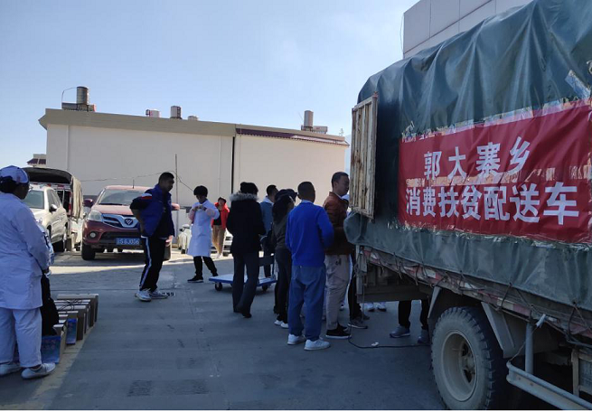 2020年1月17日中午,这样一辆车开进了凤庆县人民医院——“郭大寨乡消费扶贫配送车”,它来自凤庆县人民医院挂钩村—郭大寨乡干马村,它为医院干部职工送来了原生态的农特产品。
