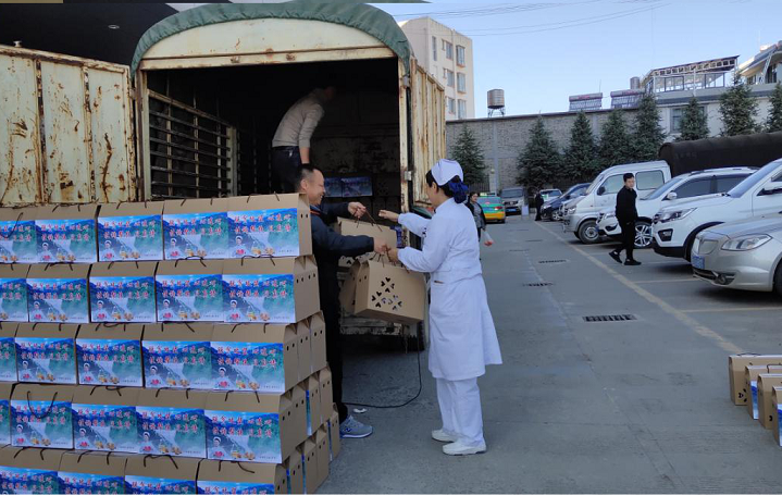 一份份农特产品来自一户户贫困户,干马村贤华专业合作社全面推行“党支部+合作社+农户”模式,通过向农户收集土鸡、核桃、蜂蜜等农产品,进行加工、包装,变成有价格的套装商品。医院组织广大干部职工向合作社进行购买,在新春佳节来临之际,让干部职工得到了放心、生态、优质的农特产品,让消费与扶贫达到了互动共赢。