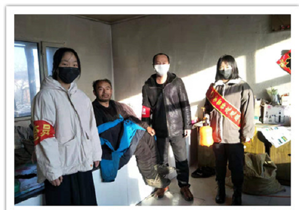 “大爷,外面天冷,还是疫情防控期,咱们少出门,多在家休息,保护好自己身体,有啥问题记得第一时间跟我们联系。”2月2日,卧牛河镇红卫村村干部和两名中学生志愿者到村里的特困供养人牟万友家入户走访,为老人家中消毒,现场教老人如何正确戴口罩、用84消毒液消毒。