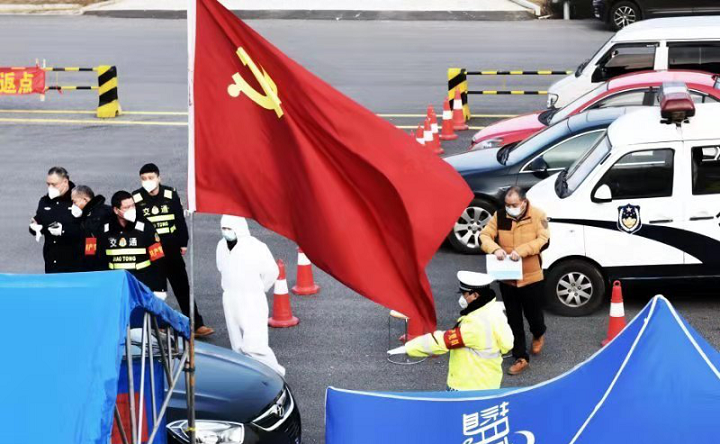 1月26日,支队党委向全体参战党员和入党积极分子发出倡议,倡导全市党员交警、辅警主动亮身份、当先锋、作表率,带头发扬无私无畏、连续作战的作风,坚守一线,严防死守,直到疫情防控阻击战最后胜利。