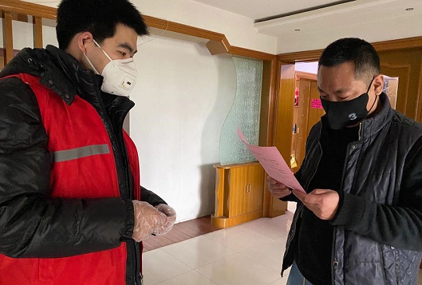排查人员信息、宣传疫情防控知识、办理出入证、小区门卫站岗……这个96年出生的帅气小伙,勇往直前、无惧困难,全心投入到这场战“役”中。上门排查人员信息的时候,他每次都冲在前头,“没事,我年轻,多爬楼梯就当锻炼了。”每天10多个小时的工作,全社区173栋楼,1982户居民,地毯式的排查,他从来没有叫过一声苦。“您从外地返锡,需要在家隔离观察14天,你放心,我会加你微信,你有任何需要可以找我,我一定尽力帮你解决。”这是他对每一位居家隔离的居民的承诺。小区实行封闭式管理,他每天起早贪黑在小区出入口与保安一起对进出人员进行体温检查、信息登记。2月3日,传来爷爷离世的消息,可他抹干眼泪,继续留下来战斗。他用自己的实际行动拨开了内心温暖的弦,迸发出青春奉献的力量,誓与这场没有硝烟的战争抗争到底。而我们也坚信,只要我们共克时艰,携手并行,我们终将取得这场战役的胜利。