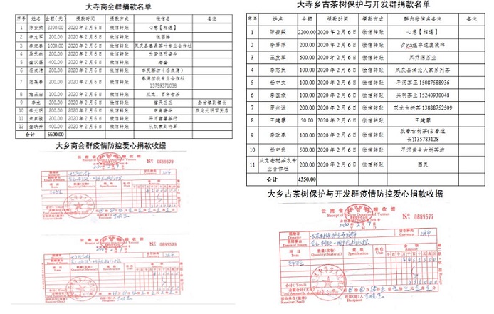 回龙村防疫战线上的领头人、回龙村党总支书记陈安荣在抓实回龙村疫情防控工作之余考虑到疫情期间全乡民生物资保障困难的问题,毅然将自家栽种的甜脆豌豆捐赠到政府和各村,并带动“大寺商会”会员和“大寺乡古茶树保护与开发群”的众多爱心人士向大寺乡累计捐款9850元,其中本人捐款4400元。