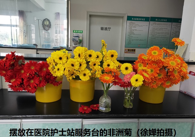如今卫生院的各个科室,无一例外,全部摆放着几束非洲菊,这一束束的亮色,为坚守岗位的职工们带来了安慰,为前来就诊的患者带来了舒心,洗去被疫情笼罩的阴霾,明媚的光景定会到来!