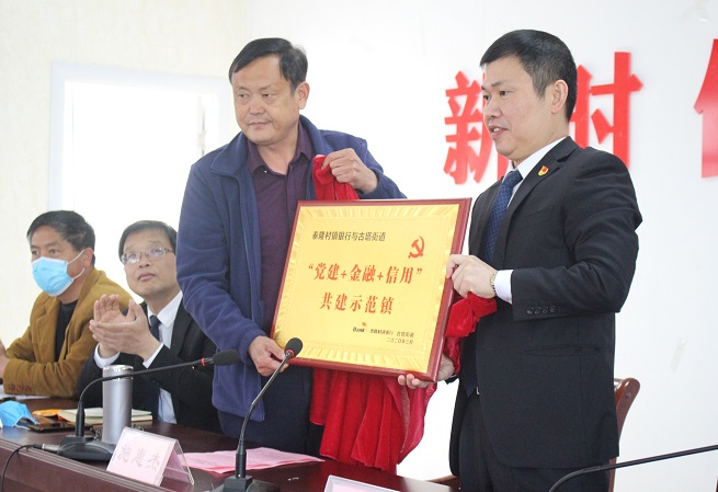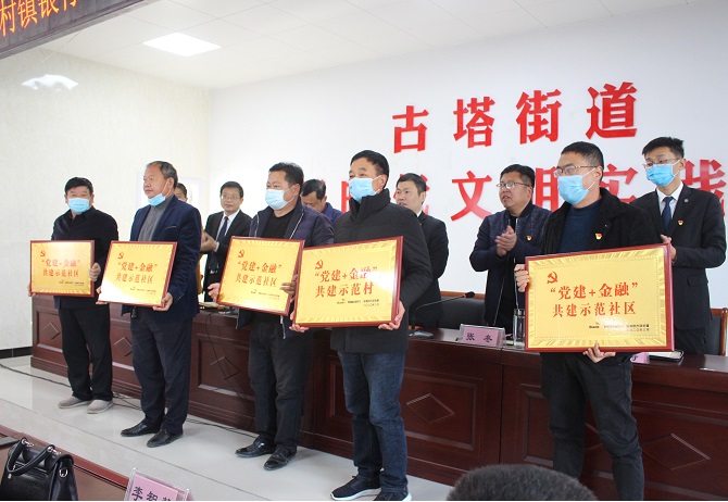 在当天的仪式上,刘屯村党支部书记张志愿介绍了泰隆银行在支持社区经济发展上的事迹;范胡村党支部书记孙晓东介绍了泰隆银行在资金上扶持贫困户脱贫的事迹。汝南泰隆村镇银行行长余万军与街道党工委书记施惠杰共同为“党建+金融+信用”示范街道揭牌,双方签署了“党建+金融”合作共建协议,并向古塔街道授信2亿元,向各村居授信2千万元。