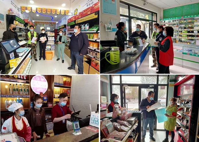 工作队每次宣传、检查时,都要求商铺做到:一是要继续保持防疫不放松、不懈怠的劲头,严格细致做好疫情防控 ;二是要坚持戴口罩、测体温、常消毒、少聚集等原则;三是要紧绷“安全生产”这根弦不放松,时刻保持高度警惕。确保我们辖区商铺在复工复产做好疫情防控工作,保障群众生命健康安全的同时,保证不出安全生产事故,积极推动我县经济社会发展。
