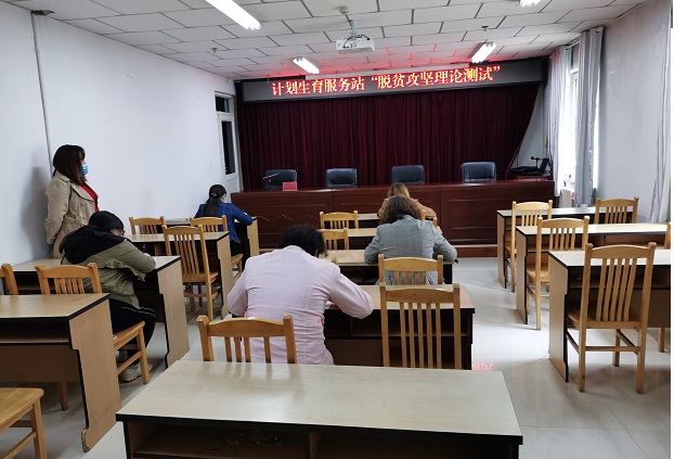 清风网讯(拜城县计划生育服务站: 刘新枝)为检验干部职工脱贫攻坚政策知识的掌握情况及学习成果,4月24日下午,拜城县计划生育服务站组织站干部职工在四楼大会议室进行脱贫攻坚政策知识考试。此次测试我站按照要求组织人员进行监考,采取闭卷集中考试方式进行,考试现场大家认认真真作答,按照交卷,整个考场纪律严肃,考风良好,秩序井然有序。考试结束后,认真进行了阅卷评分。