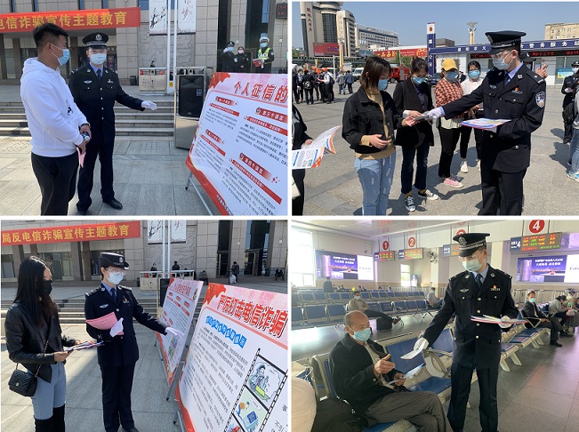 清风网讯(通讯员:刘敏)为有效预防电信诈骗案的发生,进一步提高群众的识骗防骗能力,增强防范意识,4月28日上午,襄阳铁路公安处襄阳车站派出所联合襄阳市公安局刑警支队、樊城分局刑警大队、中原派出所、火车站警务综合平台及中原街道办事处多家单位在襄阳火车站站前广场、候车室开展反电信诈骗宣传活动。活动期间,民警采用集中宣讲、图版展示、发放宣传单等方式向过往旅客现场讲解“中奖诈骗”、“办理贷款诈骗”、“QQ微信被盗类诈骗”等新型电诈、网诈的特点、种类及惯用手段,并向旅客群众传授反电信诈骗的知识,引导旅客群众如果遇到可疑情况要及时报警,谨防上当受骗,此次宣传取得良好效果。