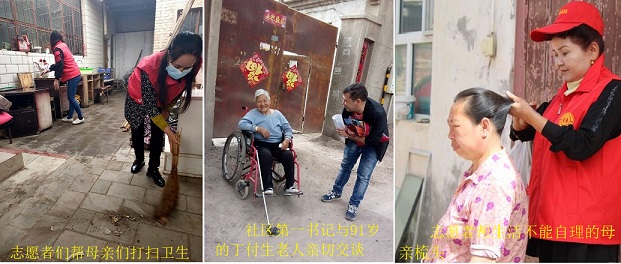 志愿者们与母亲们亲切地交谈,特别对母亲们的身体情况细心地问候,帮助她们洗澡,整洁个人卫生,打扫庭院、送去温馨的关爱和祝福,在全社区营造一个良好的感恩母亲、尊重母亲、关爱母亲的良好社会氛围。