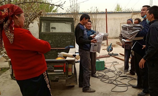 在布隆乡牙斯热木英阿依玛克村3组54号82岁老人吾斯曼•阿西木家,机关干部阿里木•库尔班、赵登泽、王兵强与村干部对老人进行了看望慰问,得知老人视力不好近期没有看电视,拿出提前准备好的报纸共同对李克强总理在“两会”上所做的报告进行了学习,老人家表示;“今年在习近平总书记和党中央的领导下,精准施策,我们打赢了疫情防控人民战,中国特色社会主义制度就是好,中国的发展必将充满希望,新疆的发展也一定会越来越好”。
