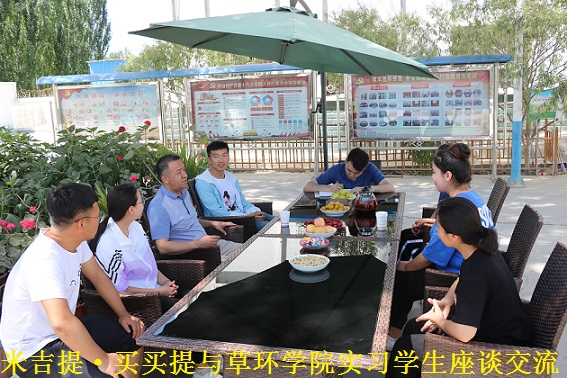 在调研期间,米吉提•买买提与各工作队实习的草业与环境工程学院学生们进行座谈交流,详细了解了34名实习学生的生活学习、参与工作情况,米吉提•买买提对实习学生们的表现给予充分肯定。他说:“希望同学们始终坚持新疆农业大学‘理论联系实际,教学结合生产’的办学方针,努力掌握科学文化知识和专业技能,扎实深入基层一线,深耕专业领域,学以致用,知行合一,将毕业论文写到天山南北、田间地头”。实习学生们纷纷表示:“谨记米吉提•买买提副校长的嘱托,在学习中增长知识、锤炼品格,在工作中增长才干、练就本领。以不怕吃苦、不怕受累的精神,扎根基层,矢志不渝,用实际行动为农民排忧解难,以专业知识为农民脱贫增收,助力打赢脱贫攻坚战役”。