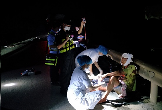 当天晚上23时许,硕龙边境派出所接群众报警称:在广西硕龙镇巷口村附近,一名群众因单方车辆事故被困,请求出警救助。警情就是命令,该所民警迅速携带救援设备,并第一时间与驻地卫生院取得联系,前往救助。