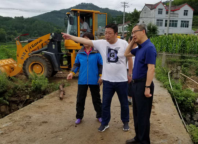 14日上午,接到英山的大暴雨受灾的上报后,黄冈市应急管理局党组成员严宜红到英山实地查看灾情。
