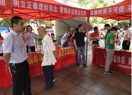 清风网讯(通讯员 曾杰 谢志峰) 为进一步提高防范非法集资宣传教育的精准度和普及率,帮助广大市民更好地辨别非法集资活动,免受高利诱惑,6月17日上午,邵阳市北塔区状元洲街道联合区打击和处置非法集资工作领导小组办公室在西湖桥下的幸福广场开展以“守住钱袋子·护好幸福家”为主题的防范非法集资宣传月集中宣传活动,辖区内十家成员单位,十一家金融机构参与。