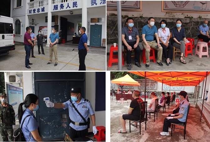 今年以来,受疫情影响,英山看守所采取最严格的疫情防控措施,对在押人员就地隔离。英山法院针对涉案人员较多,被告人无法提押出看守所开庭,为减少人员聚集,及时惩治犯罪,充分保障被告人合法权益,确保疫情防控和办案质效两不误。在英山政法委、扫黑办的支持协调下,英山法院院长汪峰、副院长董勇多次与公安局看守所沟通协商,在县公安局、看守所的配合下,法院最终确定了由庭审参与人员做好防护措施,在看守所使用巡回审判车开庭的庭审方式,现场开庭审理。