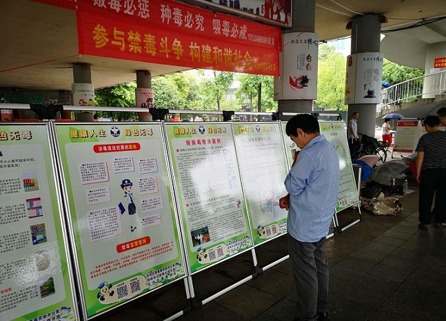 1987年联合国决定将每年的6月26日定为“国际禁毒日”。活动当天,状元洲街道通过联合区禁毒办以及区公安分局等部门在西湖桥下人流聚集处进行放置禁毒宣传展板、横幅、发放禁毒宣传资料等多种方式进行宣传增加广大群众的知晓率,活动过程中工作人员还就识毒、禁毒、防毒等方面知识,接受现场居民群众的咨询。