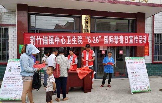 清风网讯(通讯员 姜方余 王理)6月26日是“国际禁毒日”,为进一步宣传毒品危害,提高民众远离毒品、珍爱生命的意识,近日,武冈市荆竹铺镇中心镇卫生院充分发挥职能优势,以“健康人生 ,绿色无毒”为主题,在卫生院门前开展内容丰富、形式多样的禁毒宣传新时代文明实践活动,极大的调动了辖区群众参与禁毒斗争的积极性,产生了良好的社会效果。