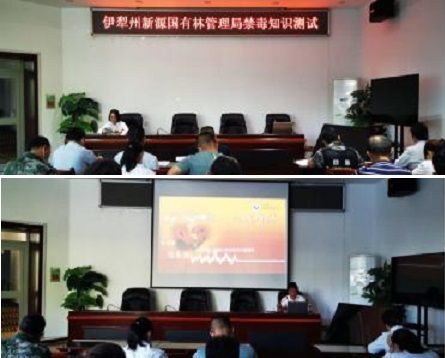 新源国有林管理局组织全体干部职工通过观看禁毒短片、禁毒挂图,禁毒宣传标语、发放宣传册等一系列形式开展禁毒知识宣传并进行了禁毒知识测试,同时组织全局干部职工积极参与社区开展的禁毒宣传活动。
