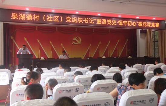 清风网讯(通讯员: 刘先卫 李华平)为铭记革命先烈奋斗历程,继承弘扬党的优秀光荣传统,牢记全心全意为人民服务的宗旨。7月1日建党节,中国共产党衡南县泉湖镇召开第六届代表大会第五次会议,组织举办村(社区)党组织书记“重温历史·恒守初心”微党课竞赛。此次庆祝活动充分结合“红七月”和主题党日等元素,精心策划,细心筹备,以热烈的微党课竞赛、庄严的仪式感向中国共产党建党99周年华诞献礼。