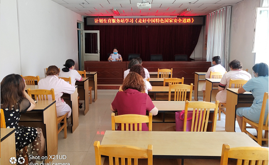清风网讯(拜城县计划生育服务站)2020年7月1日下午计划生育服务站在四楼会议室组织全体干部职工学习《走好中国特色国家安全道路》、《加强国家安全理发不断完善国家安全法律制度系》,本次学习由副站长阿斯古丽•吾斯曼主持。