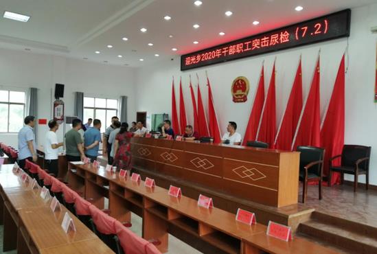 清风网讯(新邵县迎光乡人民政府;吴洪友 罗从友 江涛)为深入开展禁毒工作,夯实禁毒基础,进一步纯洁国家公职人员形象,7月2日,迎光乡对全体乡机关干部职工开展突击尿检活动。