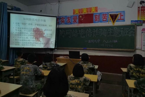 清风网讯(通讯员;周代英) 随着网络和智能手机的推广和普及,电信诈骗案件越来越多,手段也越来越高明。为切实做好学生安全防范教育,预防和减少网络电信诈骗案件的发生,近日,武冈市第九中学组织全体师生开展预防网络电信诈骗新时代文明实践主题班会。