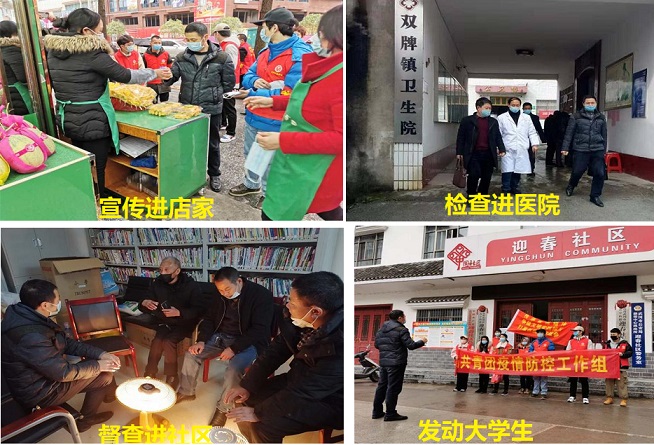 从1月25日疫战打响后,武冈市医疗保障局党组强力配合新时代文明实践全国试点工作中心大局,根据“排查100%、管控100%”目标要求,先后按照“外防输入、内防扩散”、“外防输入、内防反弹”战略要求,坚持“网格化覆盖、责任制作战、小分队值守、常态化调度”目标,在出台往来出入证制度基础上,采取测温、消毒、戴手套等形式,通过设置监测点、实行闭环式管理、做好进出登记两本台账等手段,全面落实好每天“四个清零”不延时、不放松,不仅把湾头桥镇光远村、双牌镇栗山社区作为防控主战场,而且又在迎春亭街道迎春社区担任战疫第一书记,甚至安排人手担任驻企联络员。在对未返乡人员进行劝阻外,还把已返岗人员纳入集中隔离和居家医学观察,同时把湖北及境外人员纳入摸排或管控对象,通过对联系村、社区筹集30000个口罩、20把测温枪、35件84消毒液、12件酒精,全面压紧压实社区(村)、厂区、小摊、商店等防控责任。