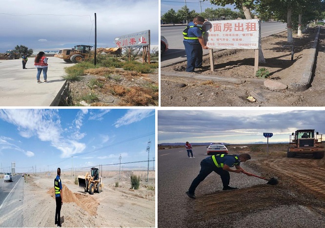 清风网讯(阿克苏执法支队柯坪执法大队:汤疆鹏)为全面强化路域环境管理,保障道路安全畅通,确保以优质的路容路貌迎接全国干线公路养护管理检查,柯坪执法大队于7月21日至23日联合柯坪公路分局开展路域环境专项整治行动。重点对国道G314线K957-K1142、S308线K0-K26路段的新增非法平交道口、非公路标志标牌、公路堆积物等路政违法行为进行了集中整治。