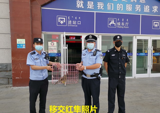 2020年7月24日14时40分,锡林浩特车站公安派出所民警在站区巡逻时发现一只受伤的野生鸟类。民警随即联系锡林浩特市森林公安局,经鉴定,此鸟属国家二级保护动物红隼,现已将红隼移交森林公安。