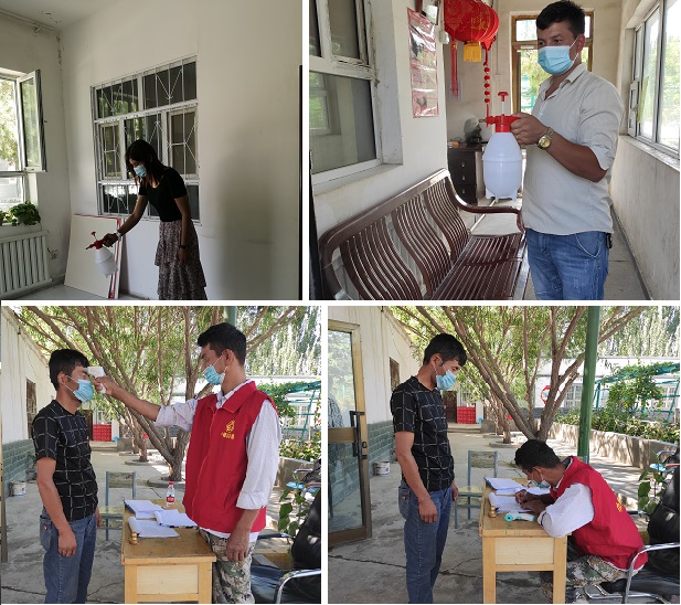 清风网讯 (古勒巴格镇硝日协海尔村工作队;杜芳兵 杨欢)疫情就是命令,防控就是责任,硝日协海尔村工作队和村委会组织疫情志愿服务队对硝日协海尔村办公区、生活区域以及重点场所进行严格的消杀工作。志愿服务人员每天对村委会以及扶贫车间、卡点做好外来人员的测体温、消毒、登记工作,争取做到早发现、早报告、早隔离、早治疗的防控措施。