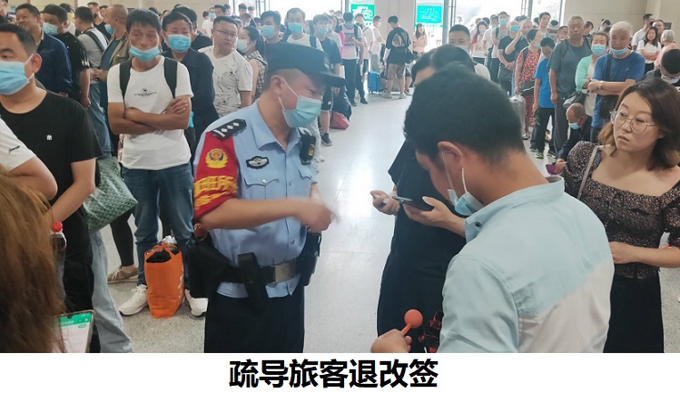 了解情况后,延安铁路公安处副处长仵新学带领安检支队支队长赵伟、消防支队支队长江华第一时间前往车站一线指挥,安排警力分布在候车室、售票厅、进站口等重点区域,积极协助客运部门做好滞留旅客的宣传、巡视、安抚及退票秩序维护工作。