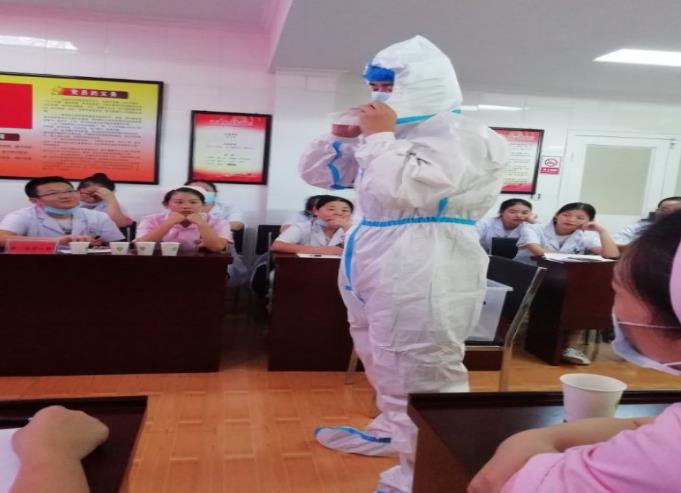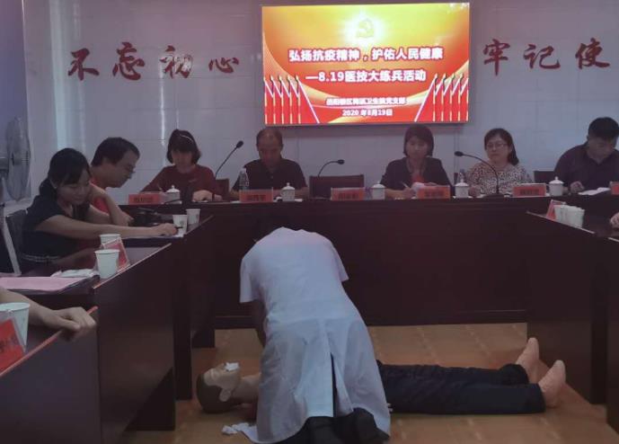 首先在中心主任张剑鹏的主持下拉开了序幕。本次比赛共4个项目:单人心肺复苏、七步洗手法、穿脱防护服、知识抢答(卫生法律法规、健康扶贫政策、医保政策、新冠肺炎知识、中心制度)。5个组20位临床医护人员参加。特邀请了楼区卫健局领导,专家作评委。