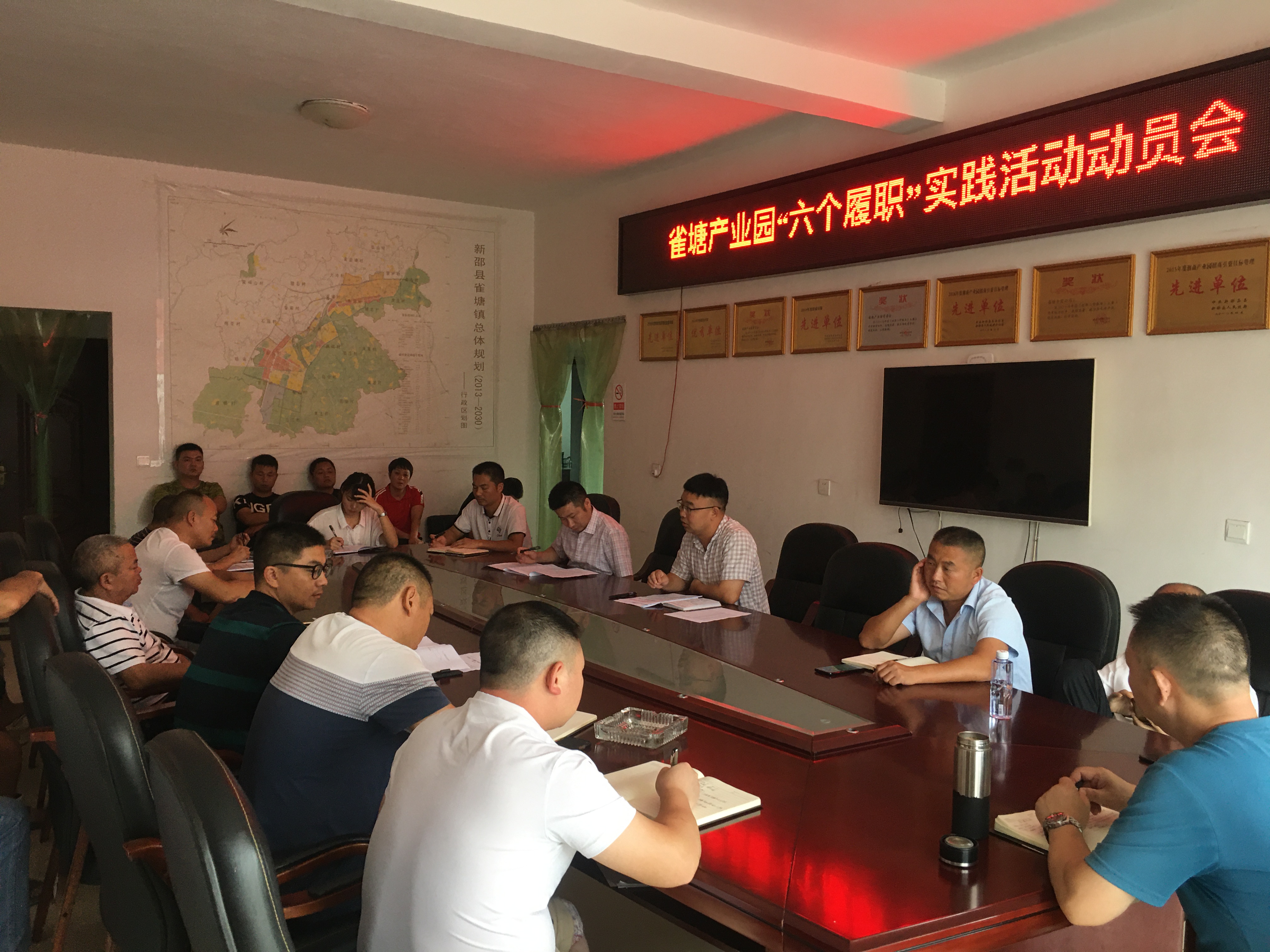 雀塘产业园负责人要求,全体人员要通过学习讨论,查摆出存在的问题,有针对性的整改提高,促进园区各项工作,着力推进30万标准化厂房建设,完成各项经济指标任务,打造循环经济特色产业名片。